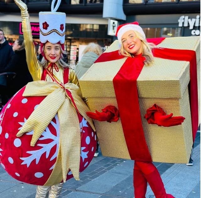 Een ballonnenvouwer, een steltloper en een snoepjesuitdeler vormen samen een vrolijk kersttrio dat zorgt voor lachen, gieren en brullen! Met hun humor, ballonnen en lekkers maken ze van het winkelcentrum één groot kerstfeest.