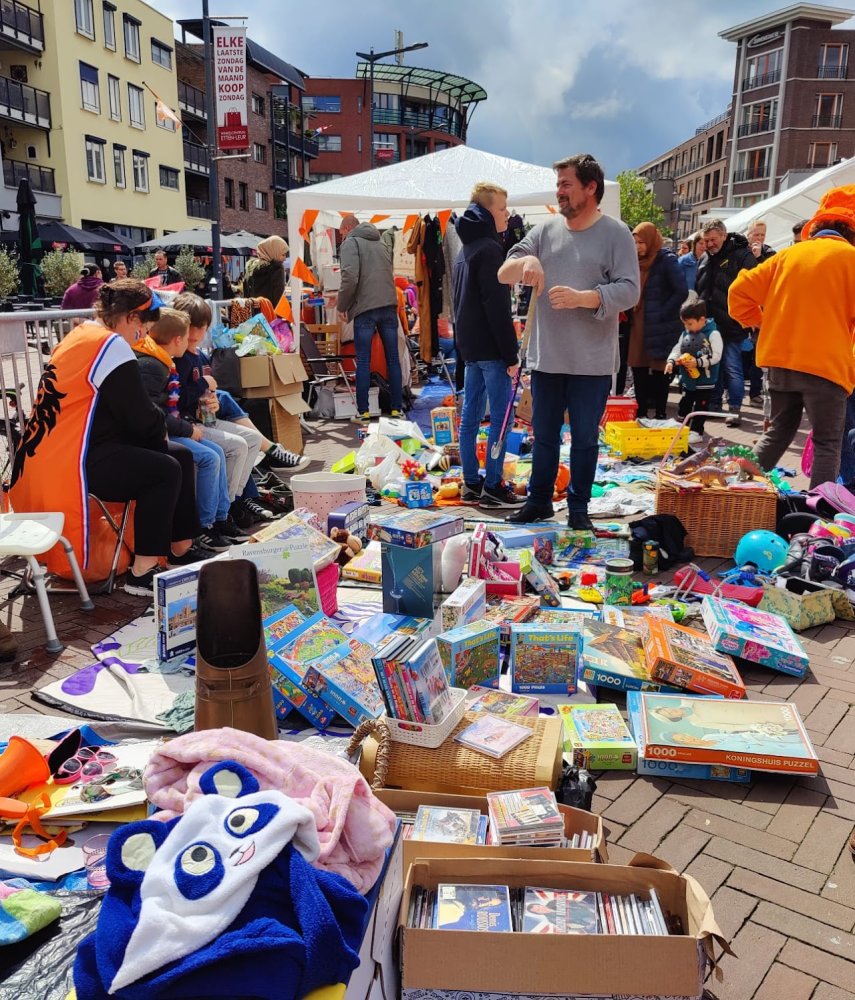 'Stichting Van alle markten thuis' houdt ook dit jaar weer de Koningsmarkt, op maandag 27 april van 8.00-16.00 uur. Een particuliere kleedjesmarkt in het centrum van Etten-Leur. Groter dan ooit, met zo'n 450 grondplaatsen!